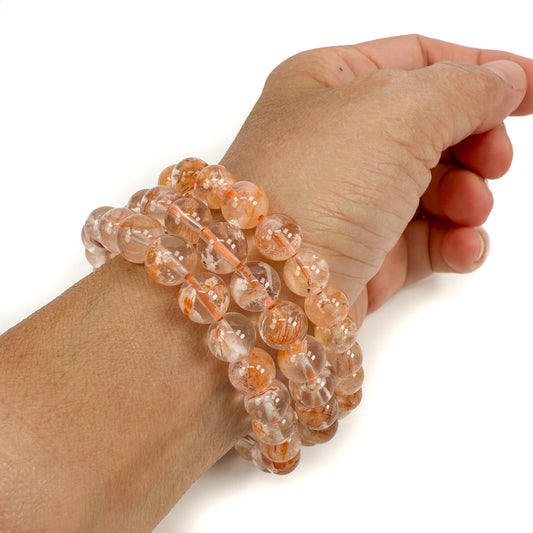 Snowflake Phantom Quartz 8mm Smooth Round Stretchy Cord Bracelet (GEM2118)