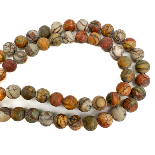 Picasso Jasper 8mm Smooth Round Bead - 8.75" Strand (GEM2215)