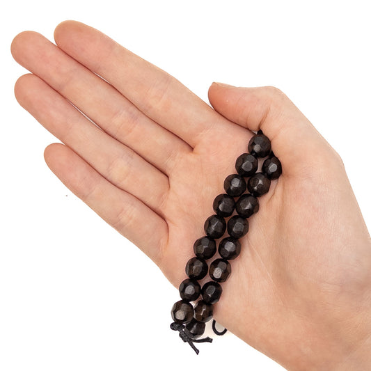 Faceted Ebony Wood 8mm Round Bead - 4.5" Strand