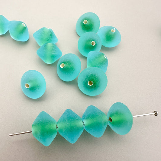 Vintage Handmade Czech 9x11mm Matte Green Bicone Glass Bead - 1 pc. (Z873)