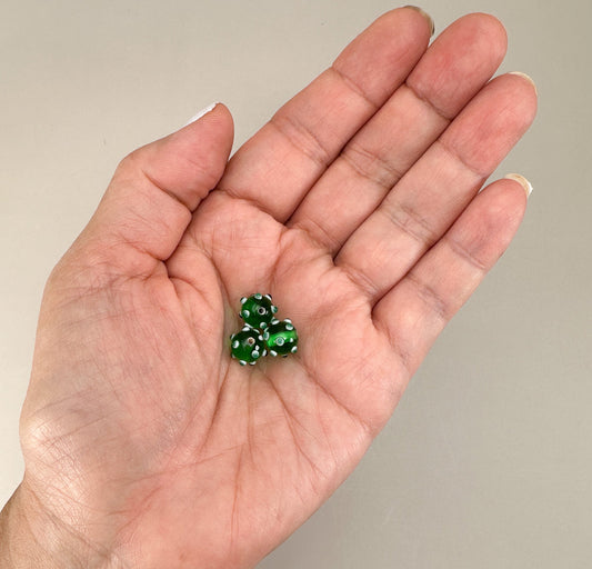 Vintage Handmade Czech Lampwork 8mm Green Dotted Glass Bead - 1 pc. (Z885)