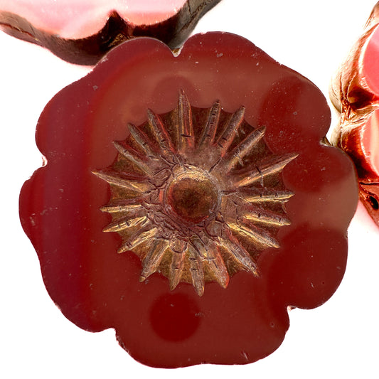 Hibiscus Flower (22mm) Maroon Red Opaque with Bronze - 1 pc.