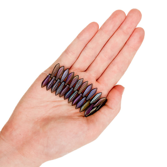 Laser Etched Medium Dagger (16x5mm) Brown Transparent Matte with Rainbow Finish and Etched Leaf Design - 25 pc. Strand