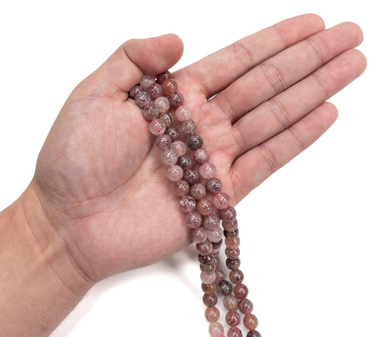 Strawberry Quartz 8mm Round Bead - 7.5" Strand