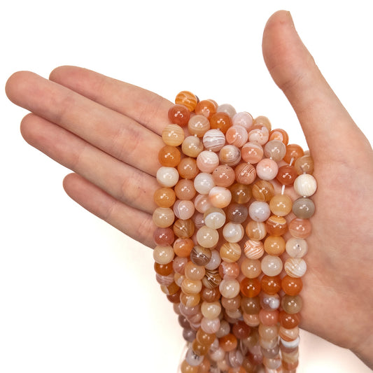 Red Botswana Agate 8mm Round Bead - 7.5" Strand (GEM1572)
