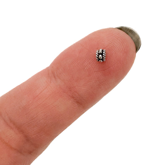 3mm Tiny Dotted Barrel Bead - Bali Silver (6 pcs/M837)