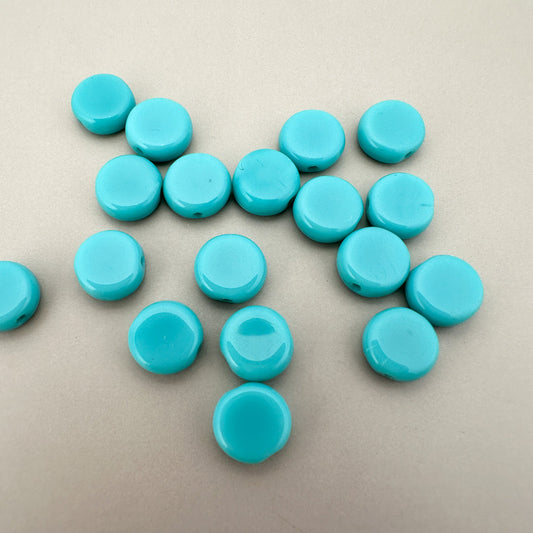 Vintage Czech 8mm Blue Flat Coin Glass Bead - 1 pc. (Z809)