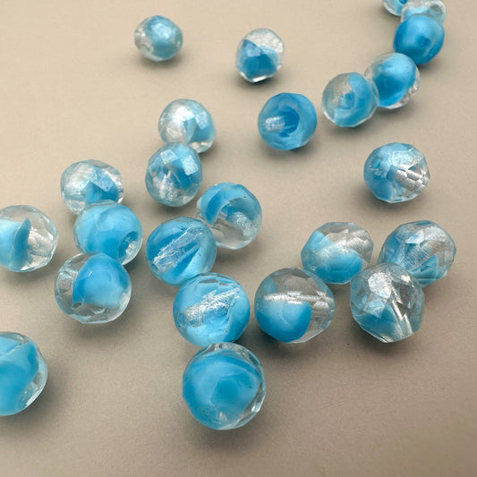 Vintage German 7x8mm Faceted Clear with Light Blue Core Oval Glass Bead - 1 pc. (Z312)