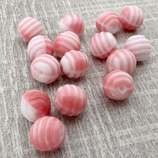 Vintage German 7x8mm Pink and White Striped Round Glass Bead - 1 pc. (Z301)