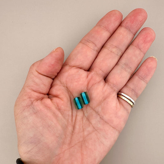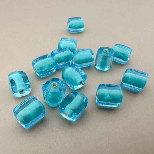 Vintage Handmade Czech Lampwork 7x9mm Aqua Blue Rectangular Glass Bead - 1 pc. (Z860)