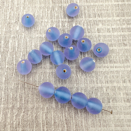 Vintage Handmade Czech Lampwork 8mm Matte Blue Silver Lined Glass Bead - 1 pc. ( Z411)