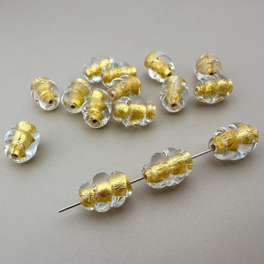 Vintage Handmade Czech Lampwork 8x12mm Clear with 24k Gold Foil Core Spiral Oval Glass Bead - 1 pc. (Z797)