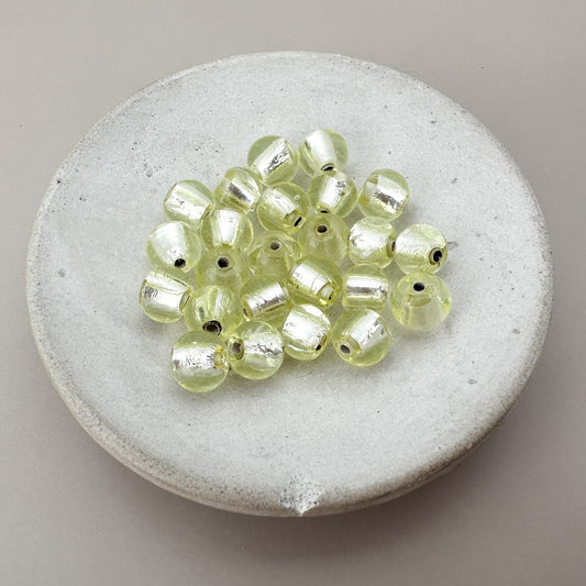 Vintage Handmade Czech Lampwork 8mm Pale Jonquil Silver Lined Round Glass Bead - 1 pc. (Z928)