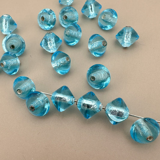 Vintage Handmade Czech Lampwork 9mm Aqua with Silver Core Bicone Glass Bead - 1 pc. (Z783)