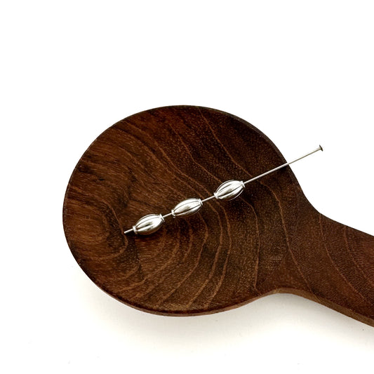 7.5mm or 9mm Ribbed Oval Bead - Bali Silver (1 pc/M2070)