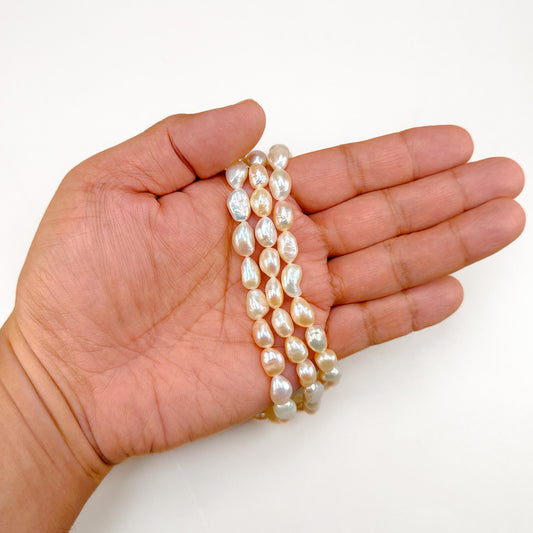 Pale Peach 8x10mm Long-Drilled Nugget Freshwater Pearl Bead - 8" Strand (GEM1985)