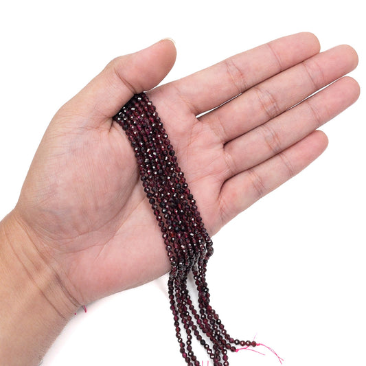 Garnet 3mm Faceted Round Bead - 7.5" Strand (GEM1932)