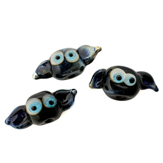 Calvin Orr Halloween Bat w/Glow in the Dark Eyes Handmade Lampwork Glass Bead - 1 pc. (LB241)