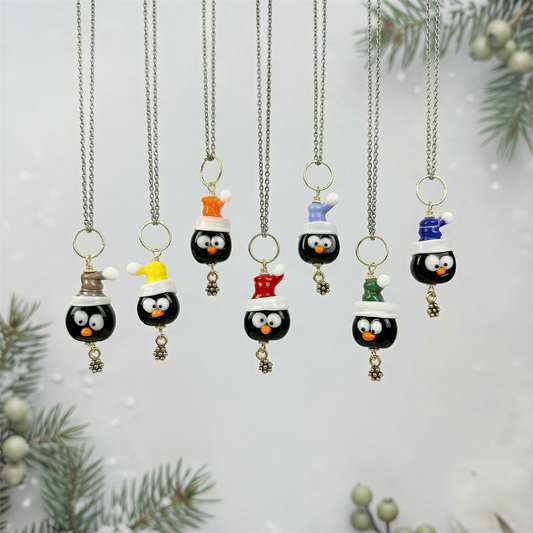 Calvin Orr Holiday Penguin Glass Bead Necklace (J286)