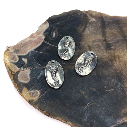 Double-Sided Seahorse Oval Pendant (Sterling Silver) - 1 pc. (M1118)