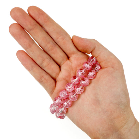 Crystal Quartz 10mm Pink Dragon Etched Round Bead (3 pcs/MIX151)