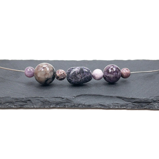 I picked a mix of purple-brown gemstones to stimulate the mind while holding you grounded and safe. Enjoy!