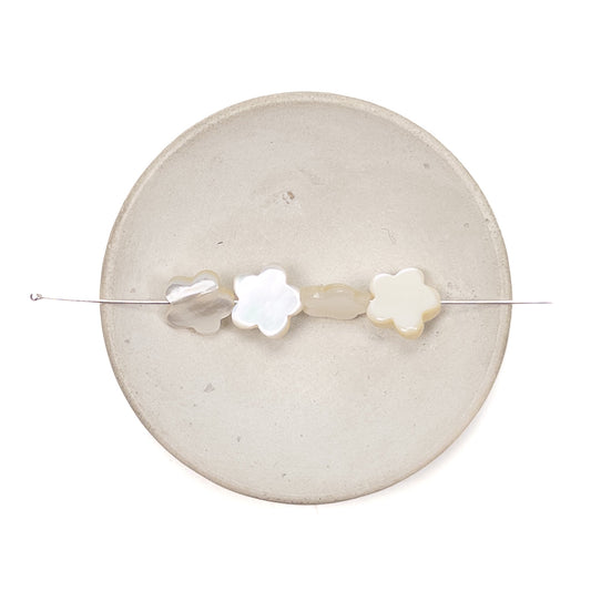 White Mother of Pearl 10mm Flat 5-Petal Flower Bead (1 pc/P2672)