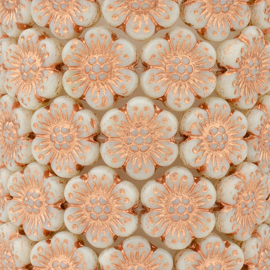 Ivory with Copper Wash 14mm Wildflower Glass Bead - 6 pcs. (CZ304)