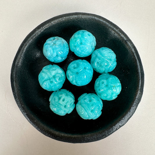 Amazonite 12mm Longevity Carved Round Bead - 1 pc. (P1738)