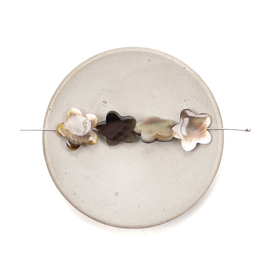 Tahitian Black Lip Oyster Shell 14mm Flat 5-Petal Flower Bead - 1 pc.