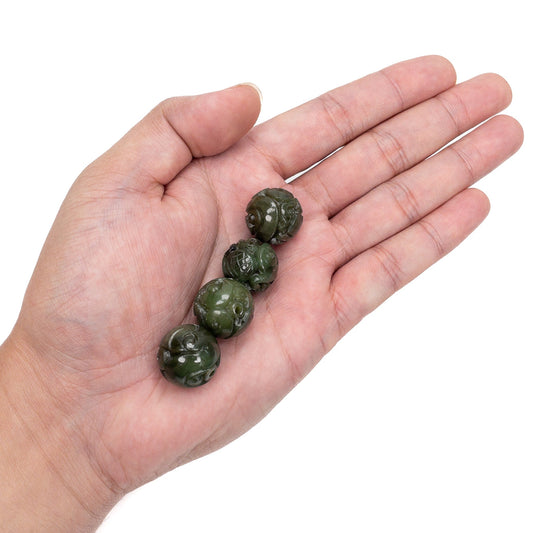 Canadian Jade 18mm Carved Round Bead - 1 pc. (P2383)