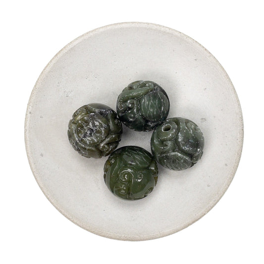 Canadian Jade 16mm Carved Round Bead - 1 pc. (P2404)