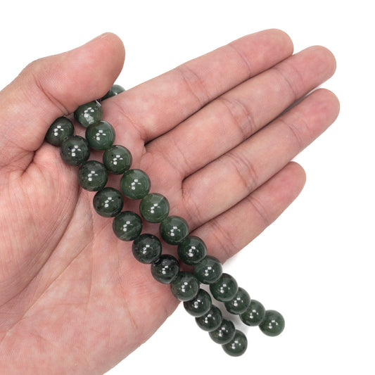 Dark Green Jade 10mm Round Bead - 8" Strand (GEM172)