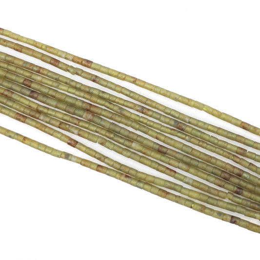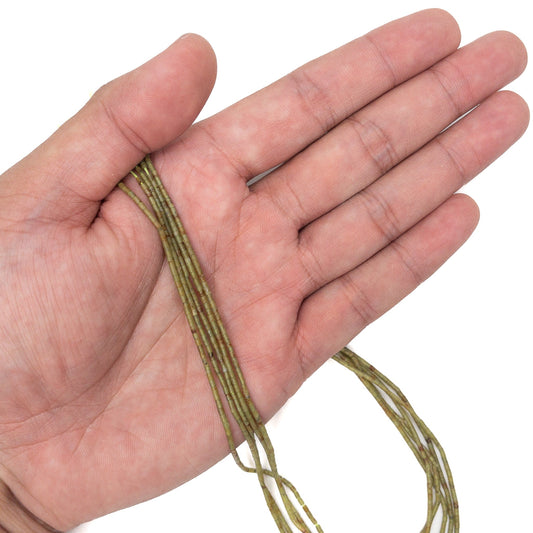 Olive Green Jade Matte Tiny Tube Bead - 15" Strand (GEM1856)