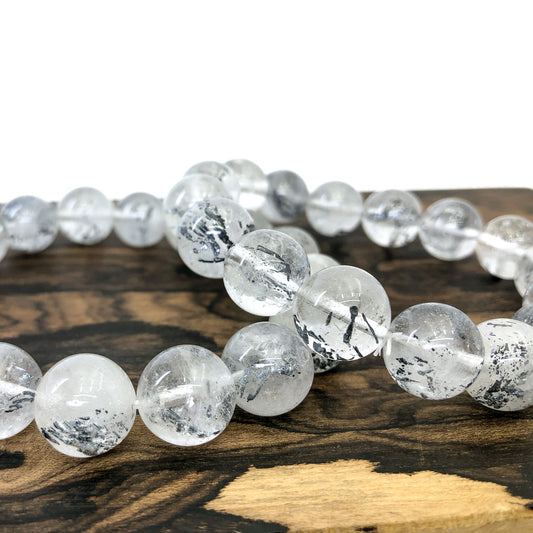 Stibnite In Quartz 15mm Smooth Round Bead - 1 pc.