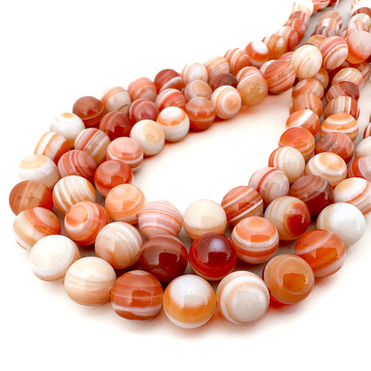 Orange Banded Agate Smooth Round Bead (2 Size Options) - 1 pc. (P3217)