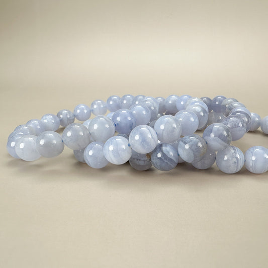 Blue Lace Agate 11mm Smooth Round Bead Stretchy Bracelet - 1 pc. (J214)