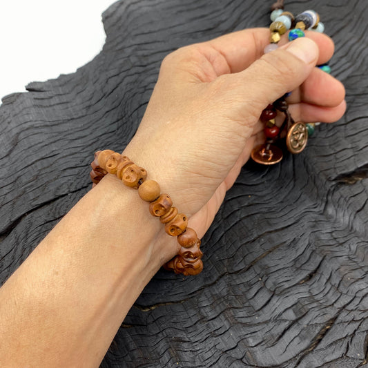 Wrist Mala with Dorje (thunderbolt) - 8mm Wood Beads