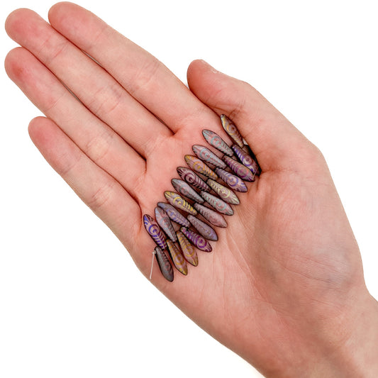 Laser Etched Medium Dagger (16x5mm) Red Opaque Matte with Rainbow Finish and Etched Leaf Design - 25 pc. Strand