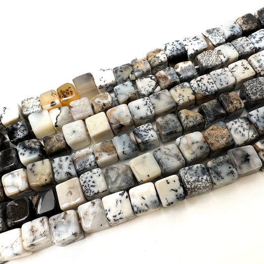 Dendritic Agate 5mm Cube Bead - 8" Strand (GEM2349)