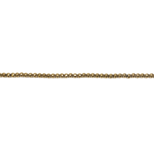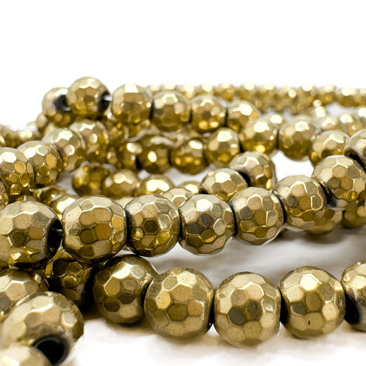 Light Gold Color Plated Hematine 6mm Faceted Round Bead - 7.5" Strand (GEM122)