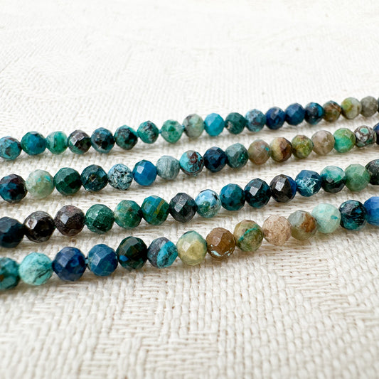 Chrysocolla/Azurite 3mm Faceted Round Bead - 7.5" Strand (GEM121)
