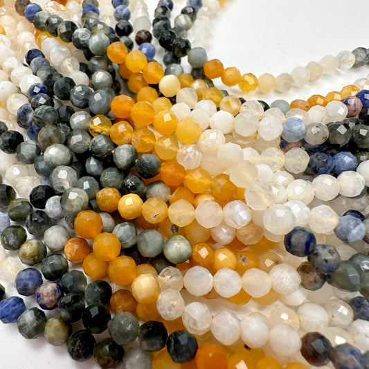 Tropical Sunrise Mix Multi-Gemstone 3mm Faceted Round Bead - 7.5" Strand (GEM1807)