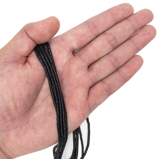 Dark Green Jade Matte Tiny Long Bicone Bead - 12" Strand (GEM1854)