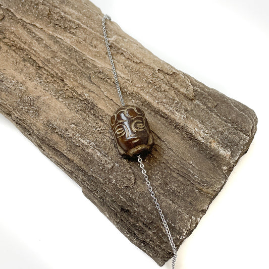 Soochow Jade - Carved Buddha Head (Brown) Bead - 1 pc. (P1169)