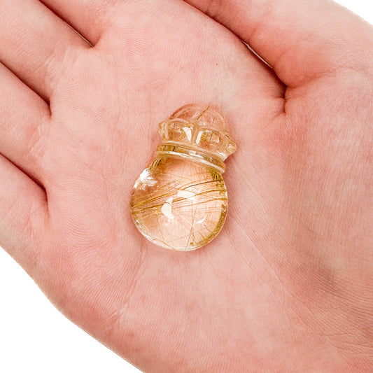 Rutilated Quartz Carved Money Bag Pendant - 1 pc.