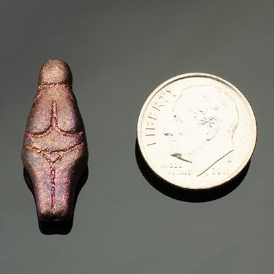Goddess 25x10mm Metallic "Raku Style" Opaque Czech Glass Bead - 2 pcs. (Z1002)