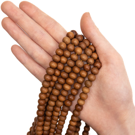 Sandalwood 8mm Round Bead - 108-Bead Full Mala 30" Strand (GEM1409)