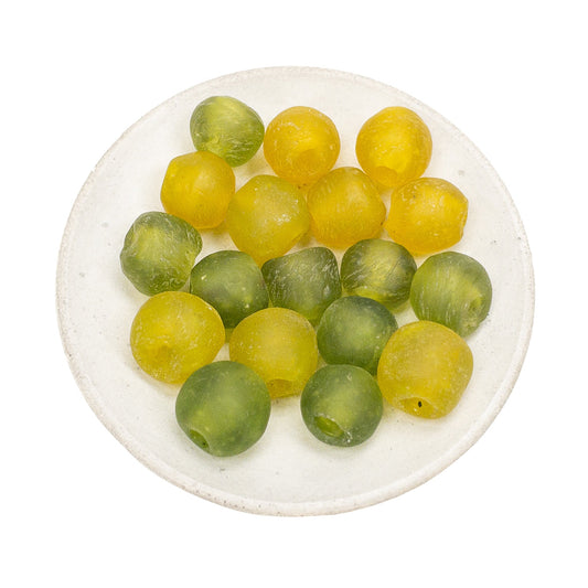 Yellow & Green Recycled Glass Bead Mix - 18 pcs. (MIX107)