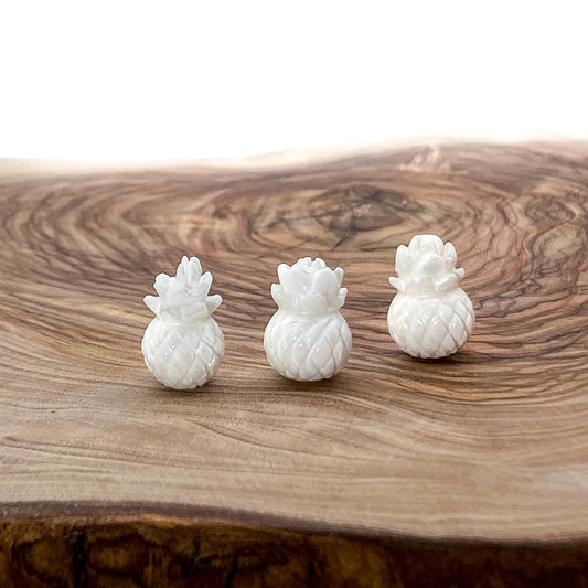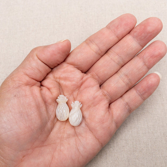 White Mother of Pearl Shell Carved Flat Pineapple Charm - 1 pc. (P2193)